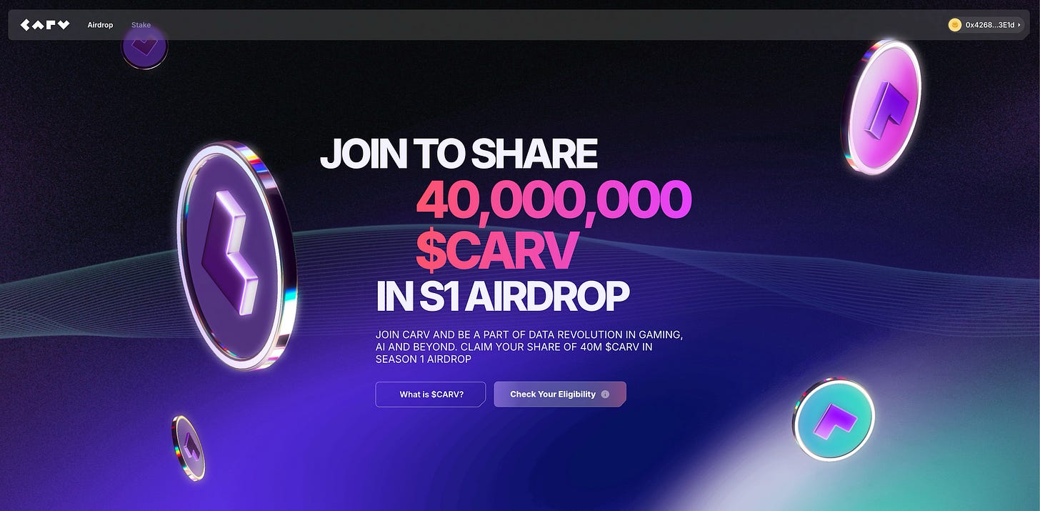CARV Airdrop S1 Claim Page: https://airdrop.carv.io/