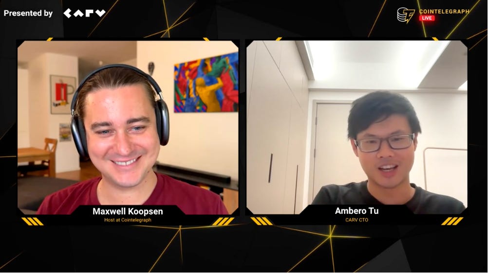 CARV CTO, Ambero, featured in Cointelegraph AMA, breaking down the shift from AI tools to sovereign, on-chain beings
