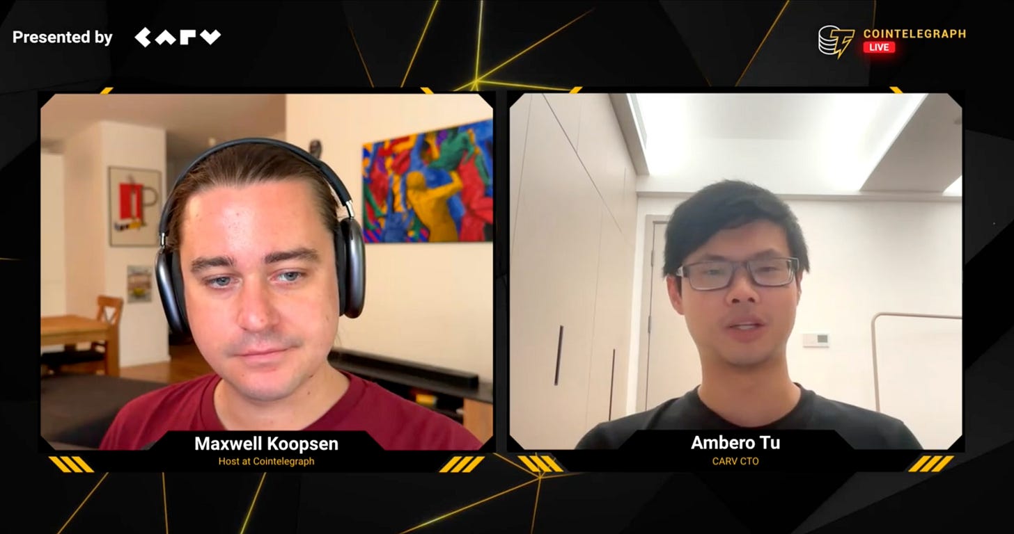 - CARV CTO Ambero featured in Cointelegraph AMA: Deep dive into how CARV is shaping the future of agentic AI in Web3.