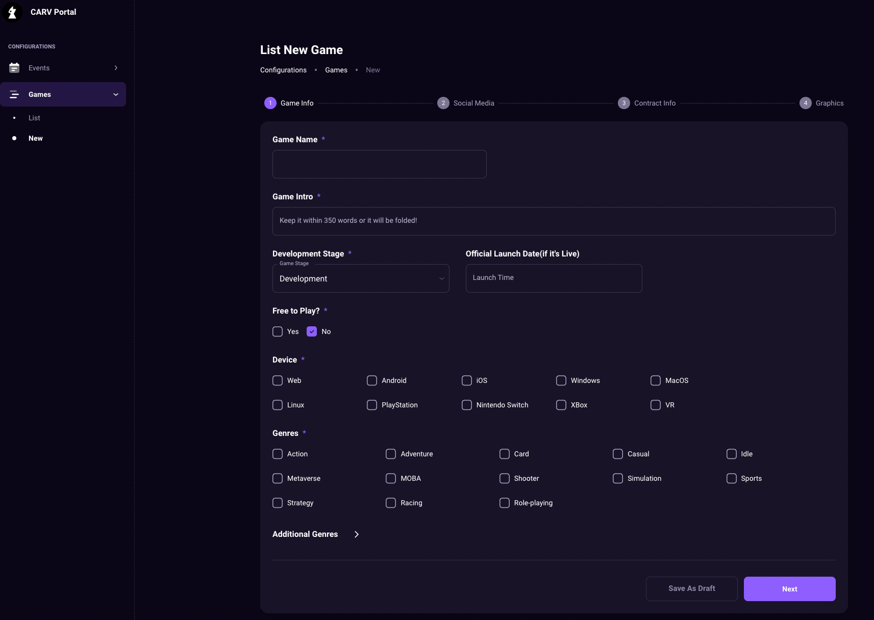 This week, we added the Game Listing function to our CARV portal! Game partners now can list themselves on CARV.io and manage their game information and media assets, helping them better present themselves and host the latest and important updates on CARV.