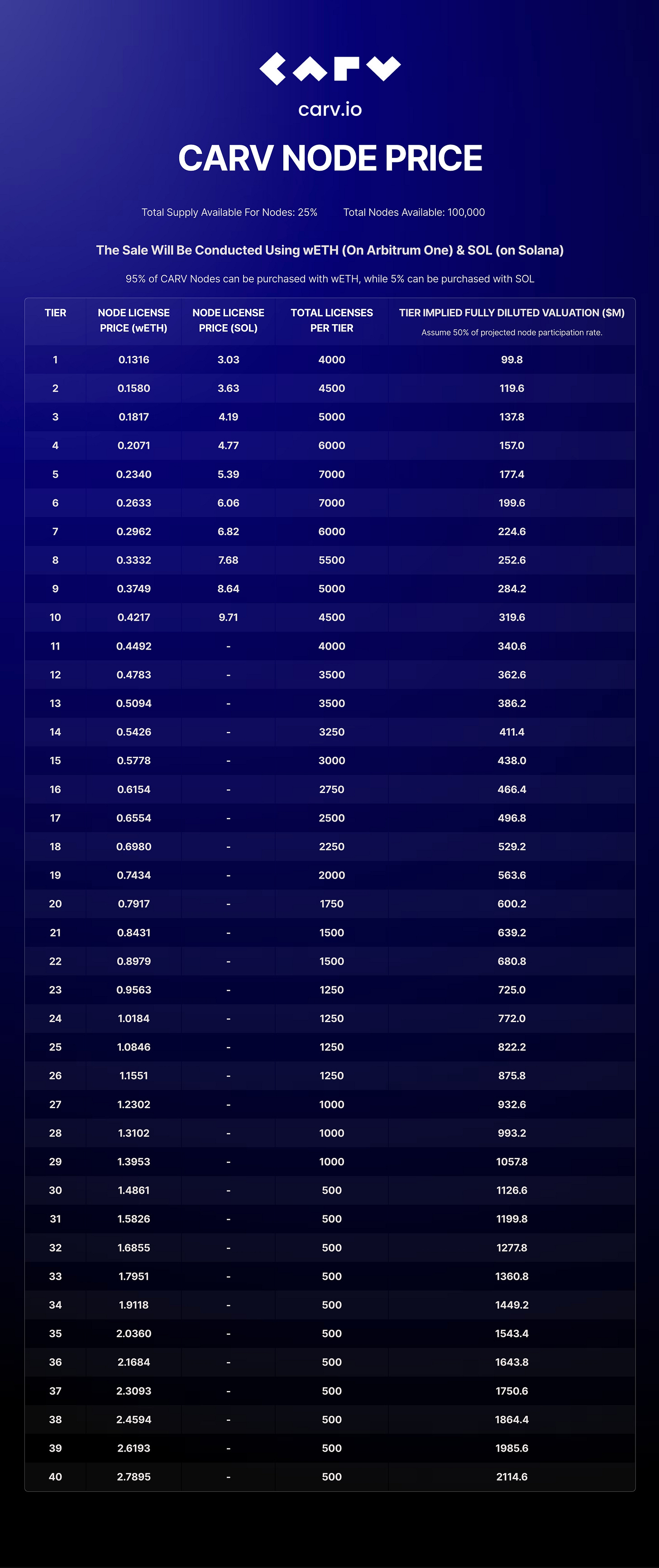 CARV Node Price List See Below: