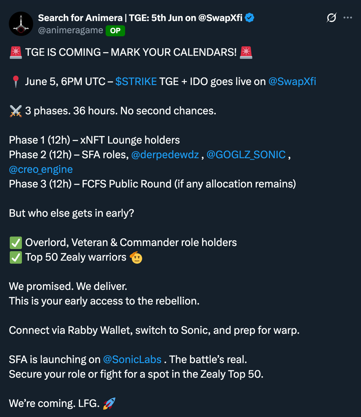 Search for Animera's $STRIKE Token Generation Event and Listing Scheduled for June 6 Read More