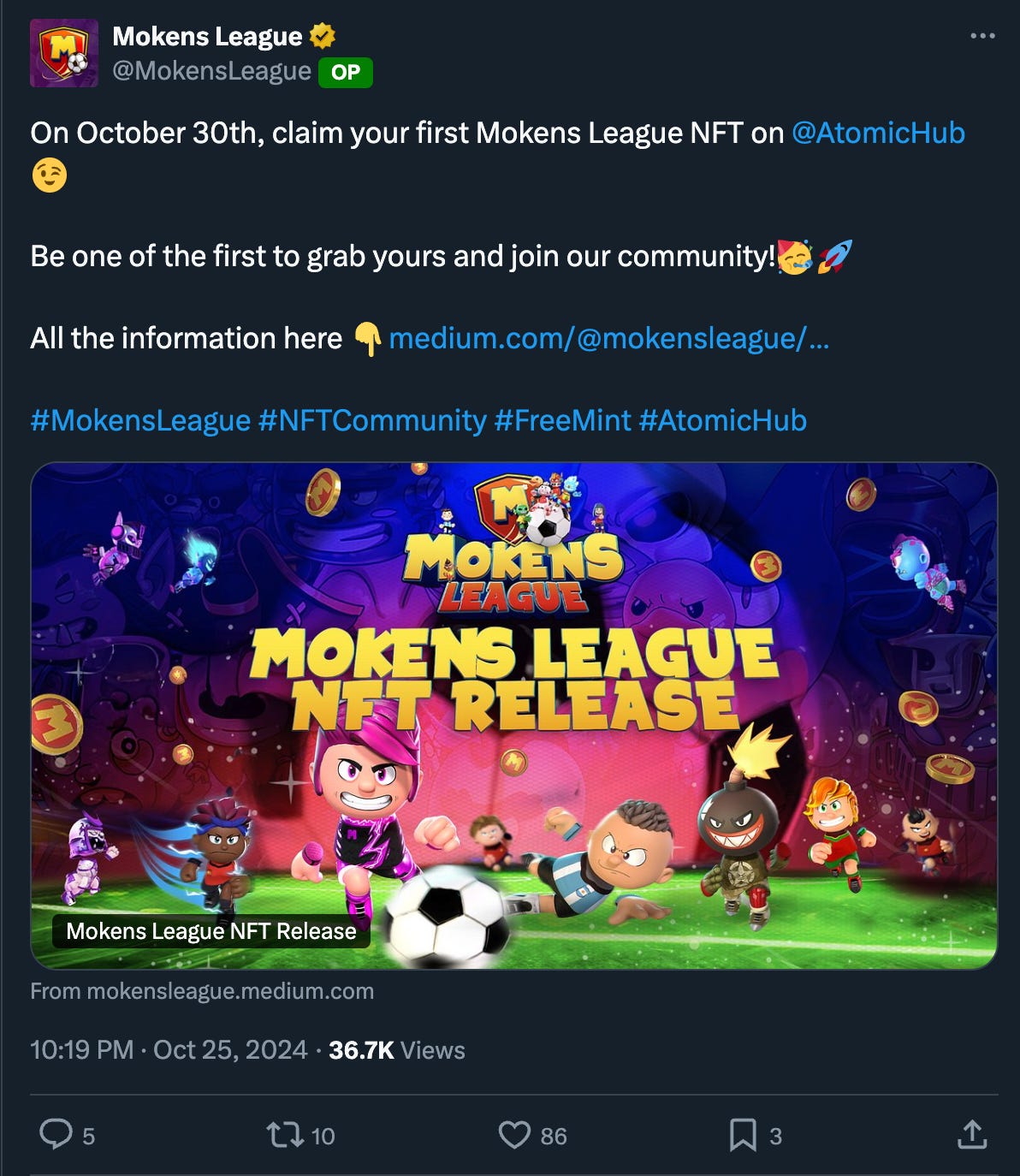 Mokens League, a casual sports game, offers FREE NFT mint on Oct. 30 Read More