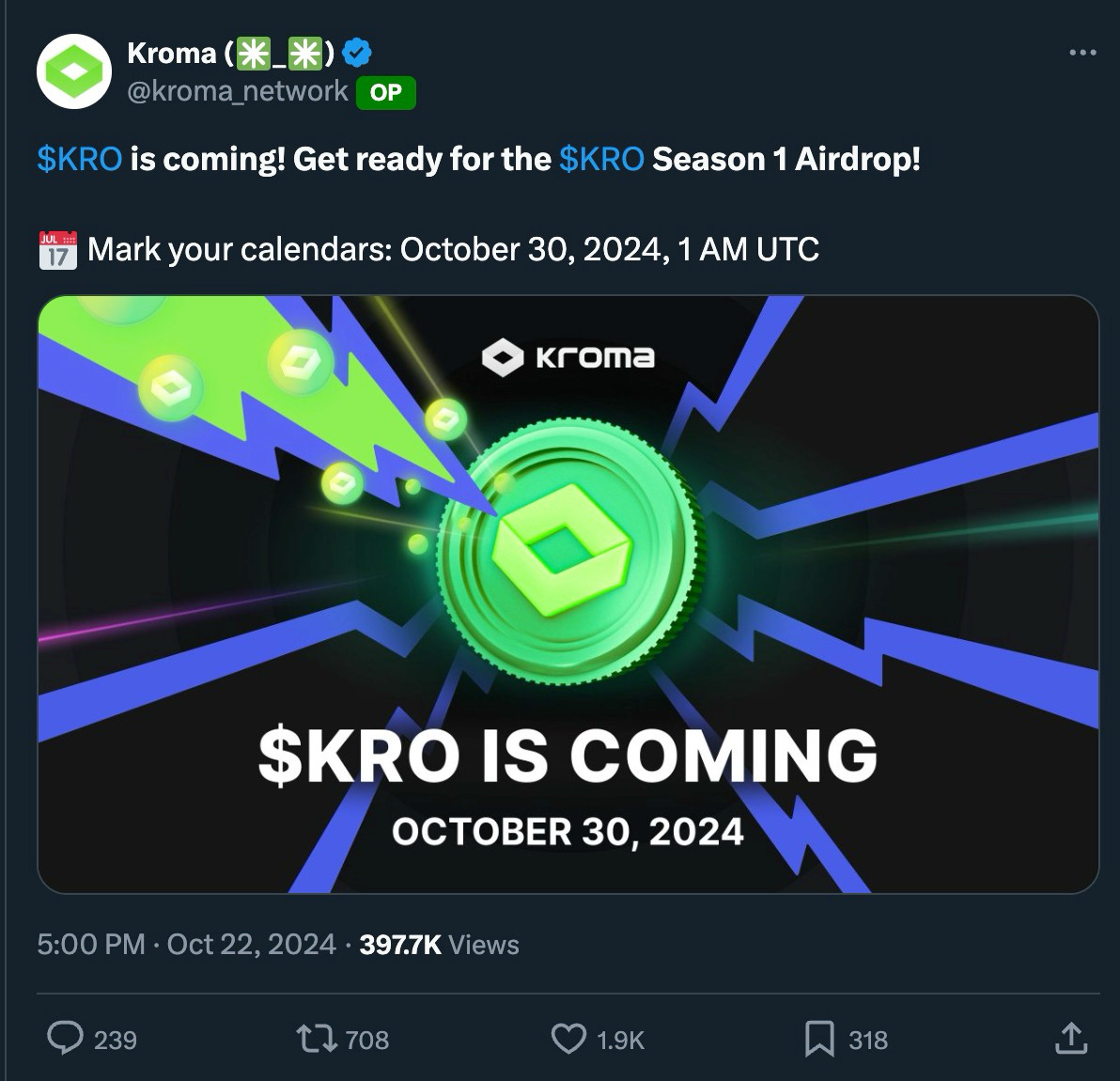 Kroma Network $KRO Airdrop & Listing on October 30 Read More
