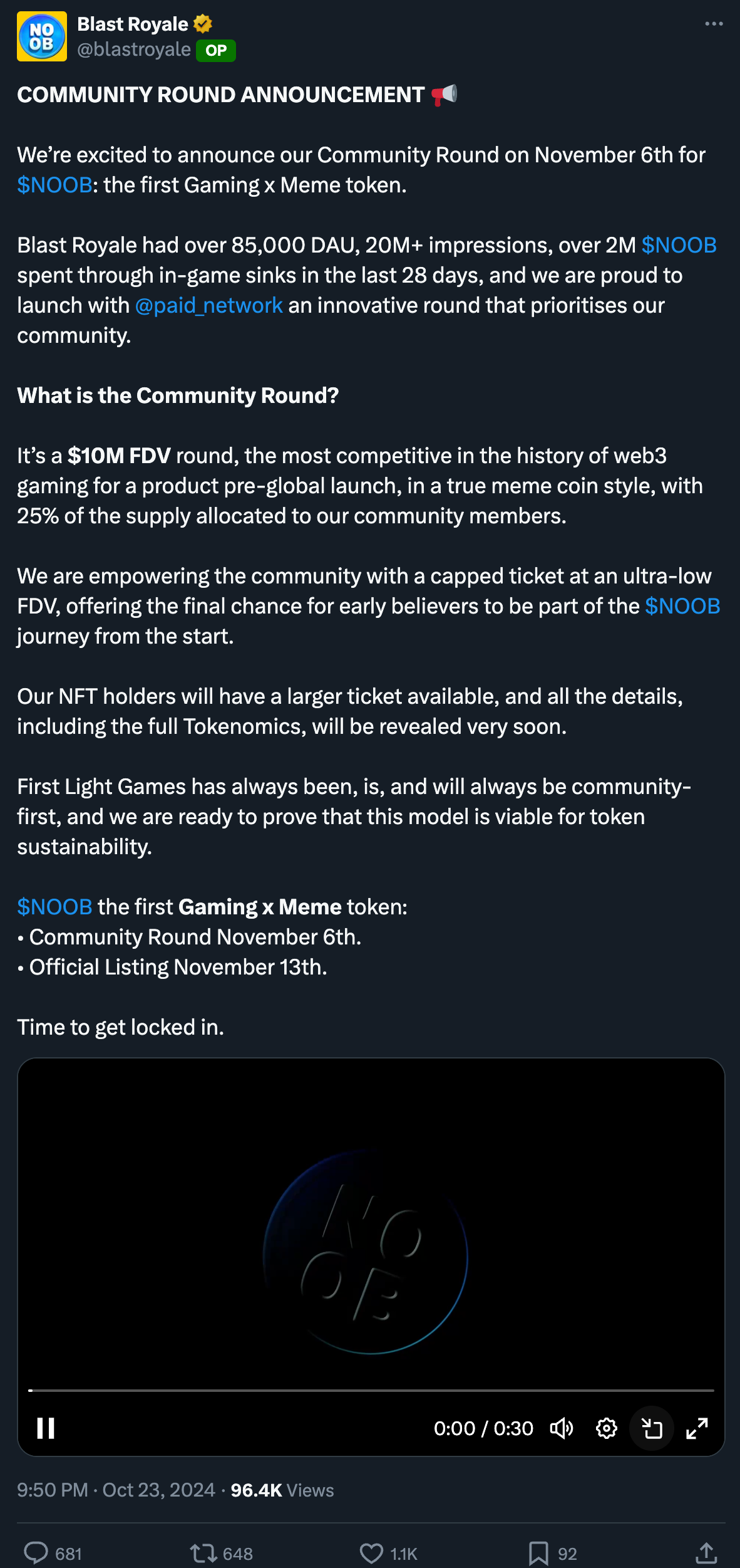 Blast Royale $NOOB Community Round on Nov. 6, Official Listing on Nov. 13th Read More