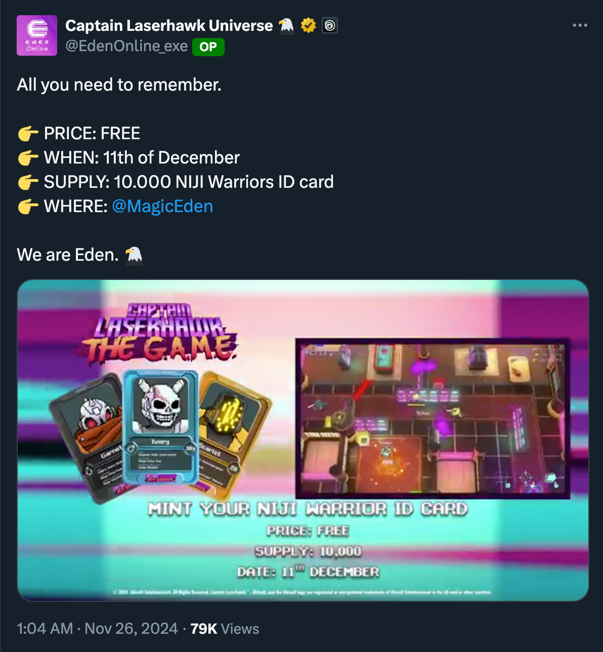 Captain Laserhawk Universe NIJI Warriors ID NFT FREE Mint, December 11 Read More