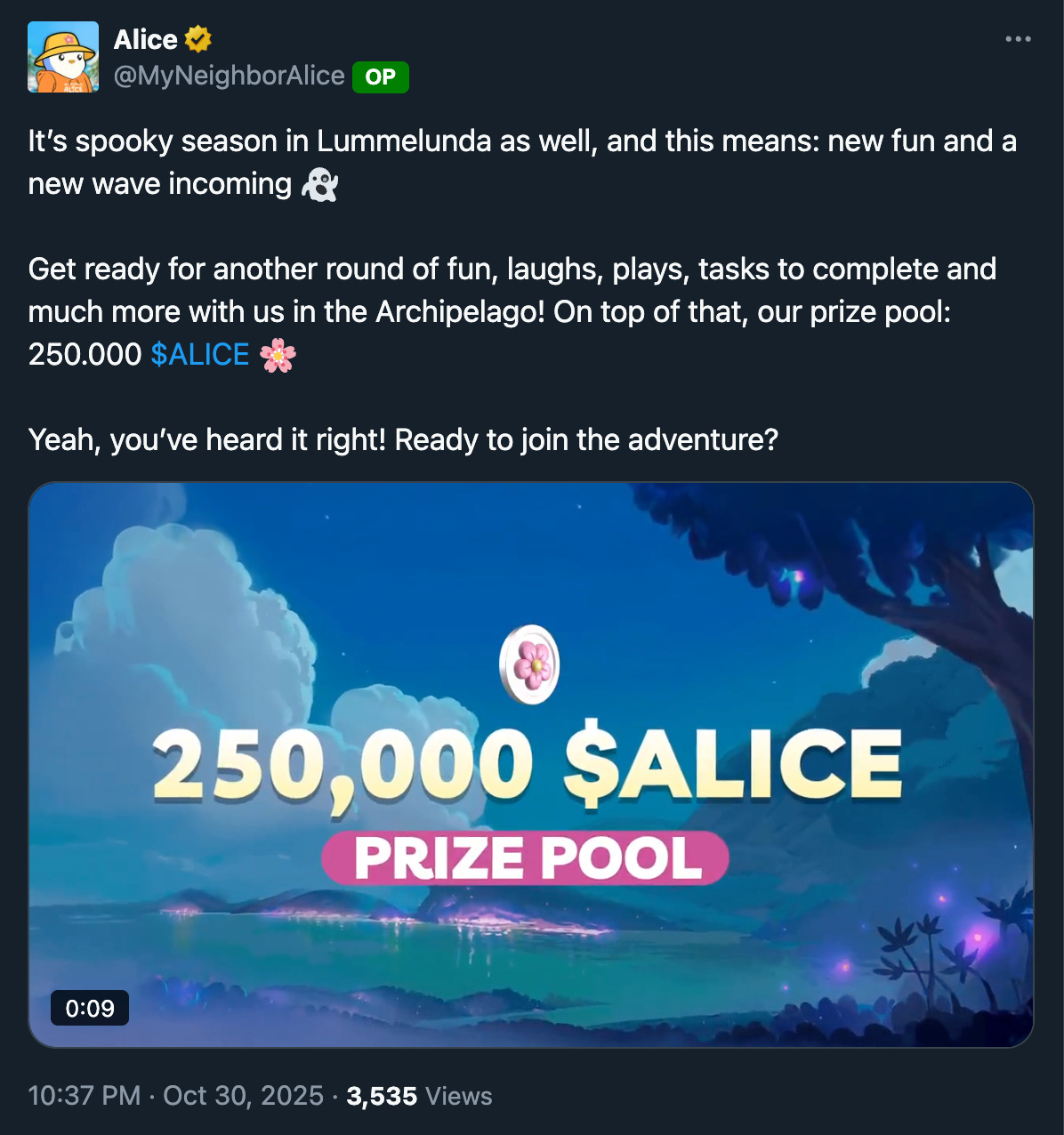 My Neighbor Alice Launches Play-to-Airdrop Campaign Nov 4 with 250K $ALICE Rewards Read More