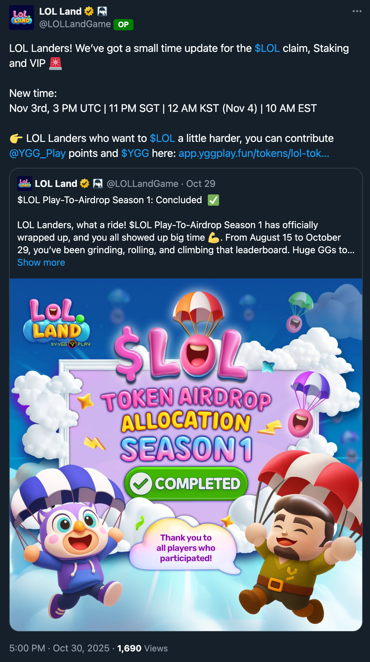 LOL Land $LOL TGE & Listing Scheduled for Nov 3 Read More