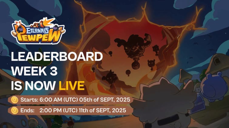 Eternals has launched the Week 3 Leaderboard for its 2D browser shooter, Eternals Pew Pew, running from September 5–11 alongside Patch 1.1. The update introduces Nightmare Mode, which increases difficulty and rewards, along with new perks for Guardian NFT holders, including the exclusive Mythical Proto Dragon Roar aircraft. Players compete as the Holy Cat, piloting aircraft against waves of enemies while earning Shooting EXP to climb the rankings. The patch also expands the Battle Pass with 20 new levels and promises a limited-time event following the success of earlier boss raids. Rewards include Ranking Points, loot boxes, and NFT Chests containing materials for the upcoming open beta. Players can log in via traditional accounts or web3 wallets on the Viction blockchain, which supports gas-free transactions. With these updates, the Alpha Playtest reaches its midpoint, offering fresh challenges ahead of a wider release later in September.