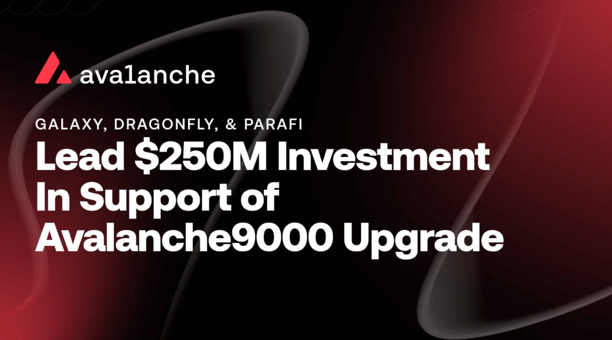 Avalanche has raised $250 million through a locked-token sale led by Galaxy Digital, Dragonfly, and ParaFi Capital, with participation from over 40 investors. The funding supports the Avalanche9000 upgrade, which promises a 99.9% cost reduction for L1 deployment and 25x lower transaction costs on the C-Chain. Scheduled for a December 16 mainnet launch, the upgrade aims to enhance scalability, boost institutional adoption, and drive innovation across DeFi, gaming, and tokenization of real-world assets. A $40 million Retro9000 grant program will further support developer growth.