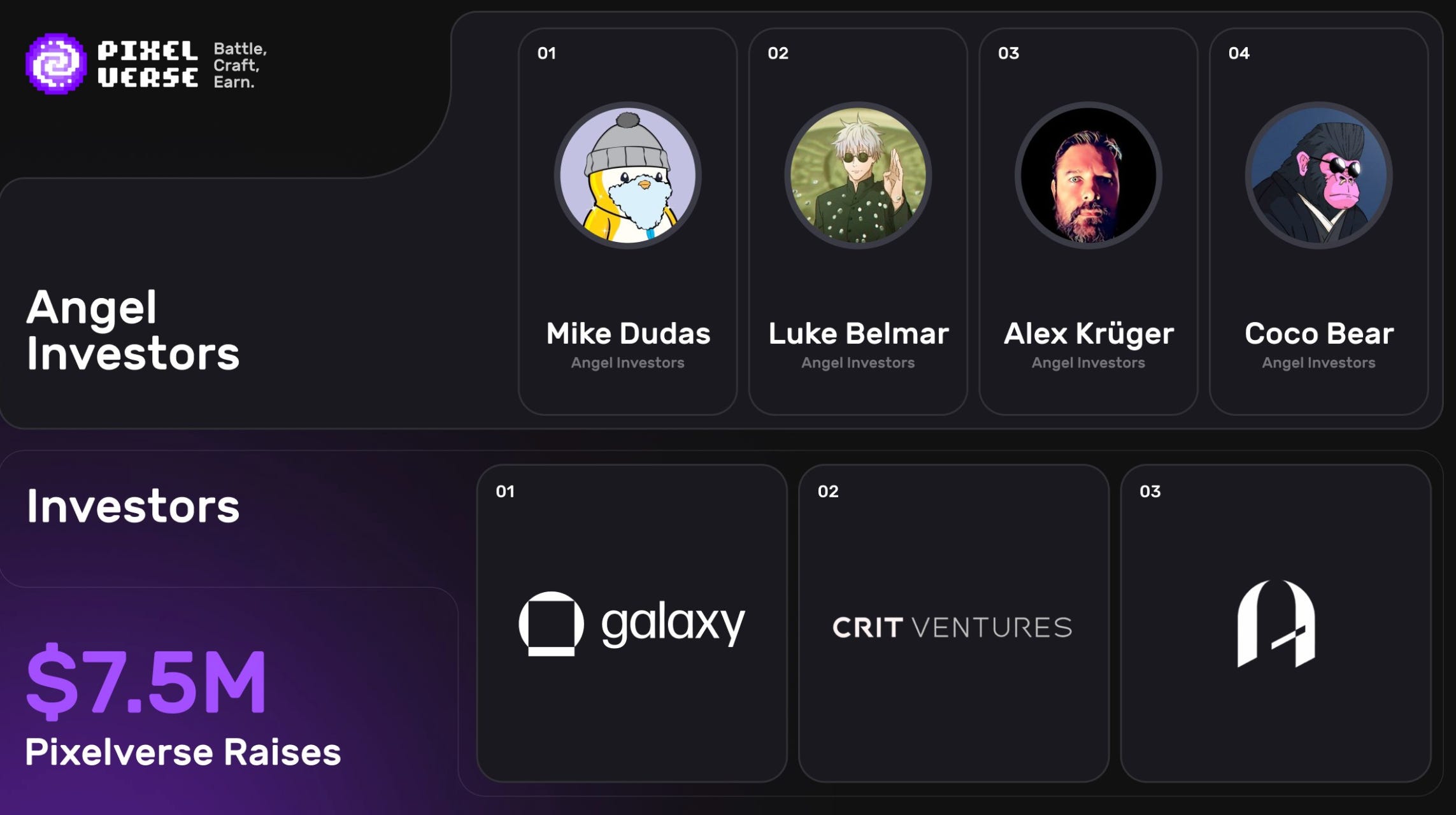 The Telegram-based crypto gaming ecosystem Pixelverse has successfully completed another $2 million funding round, with participation from Galaxy Interactive, Crit Ventures, and Arc Community, alongside notable individual investors in the cryptocurrency space such as Alex Kruger, Luke Belmar, and Mike Dudas. This round brings its total funding to $7.5 million.