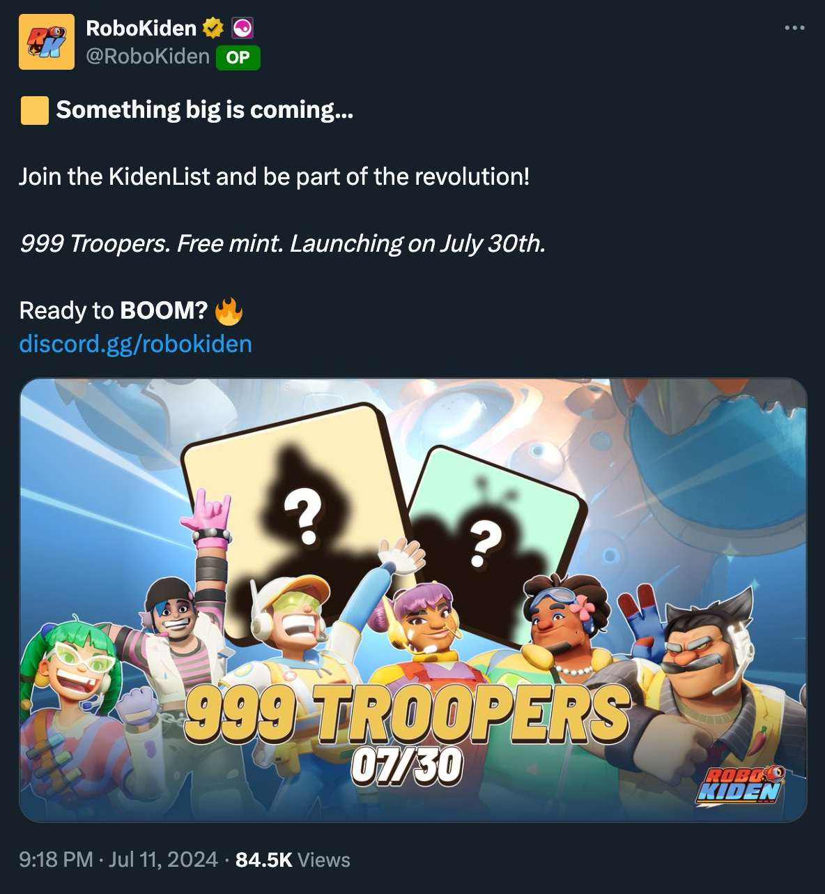 RoboKiden for Discord Members FREE NFT Mint on July 30 Read More