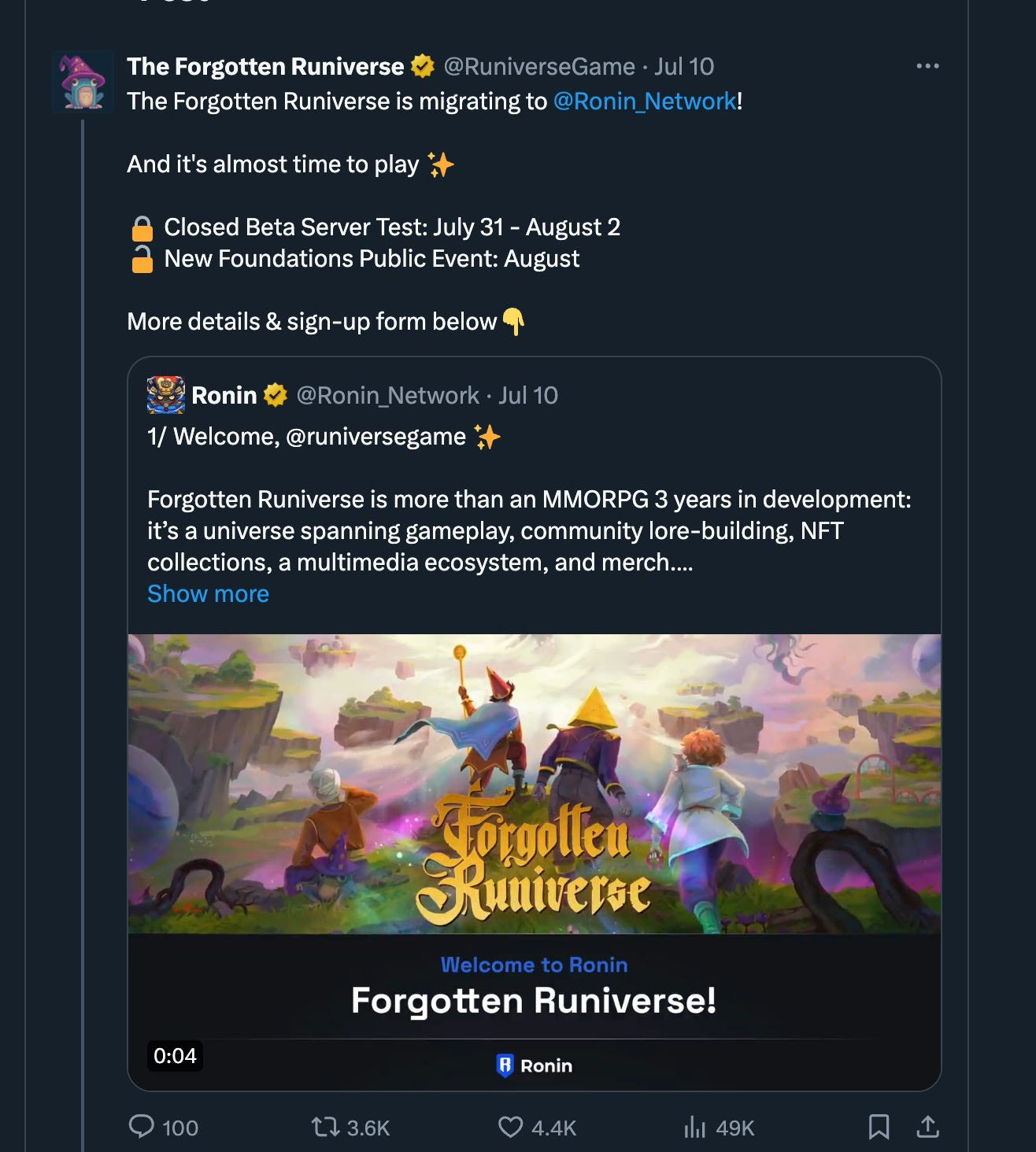 Forgotten Runiverse Migrates to Ronin Ahead of Epic Games Launch Read More