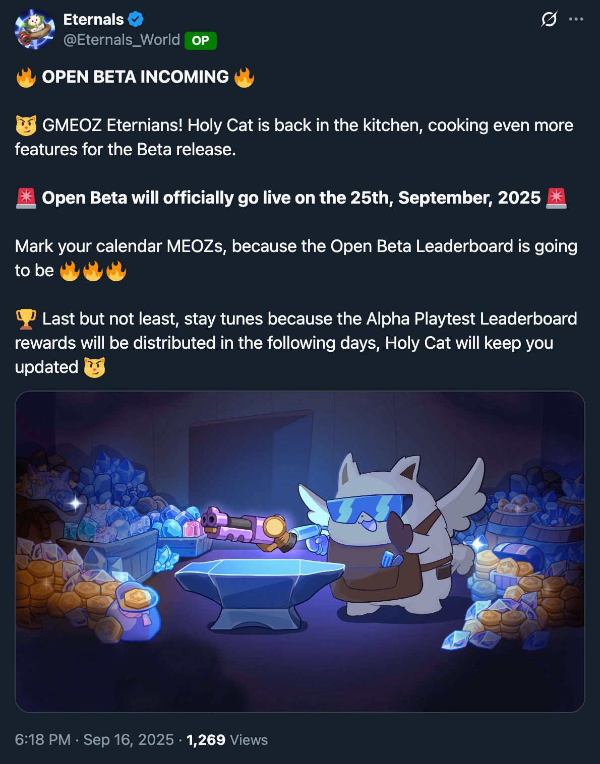 Eternals, a fantasy MMORPG with PvE, PvP, and guild-based battles, will open its Beta Test on September 25, 2025. Players can explore the game’s expansive world, engage in dungeons and large-scale wars, and test its blockchain-powered progression systems.