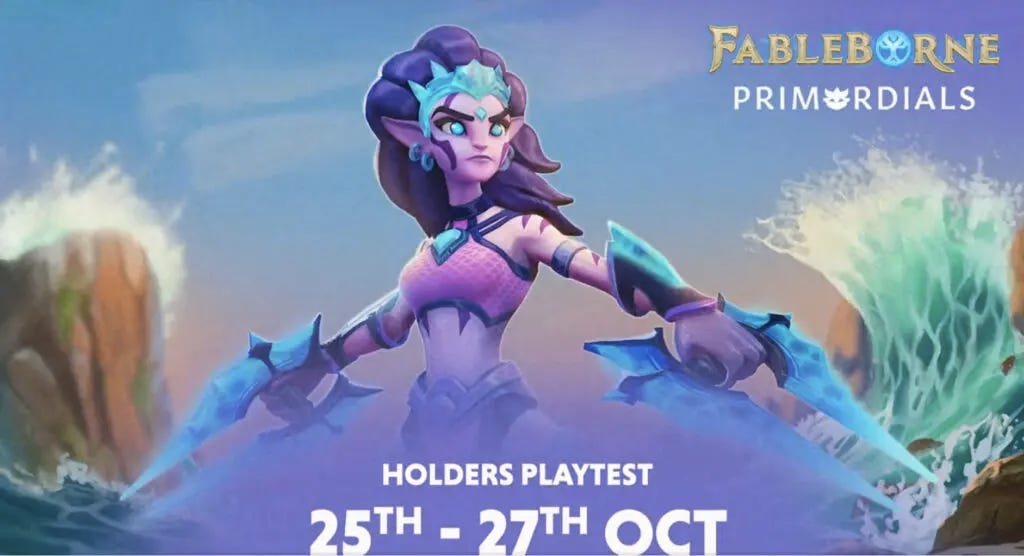 Fableborne is introducing a new playtest, the Holders Playtest, available exclusively to Fableborne Primordial NFT holders. This playtest adds new features, including defense units like the Healer and Sniper, an improved defense AI, and a melee hero, Nix. The game features an action RPG and base-building blend with multiplayer asynchronous combat. The playtest runs from October 25 to October 27. Fableborne is designed for quick play sessions and offers a fair economy for unlocking new heroes. Visit their website, Twitter, and Discord for more information. Fableborne Primordials are available on OpenSea (Polygon network).
