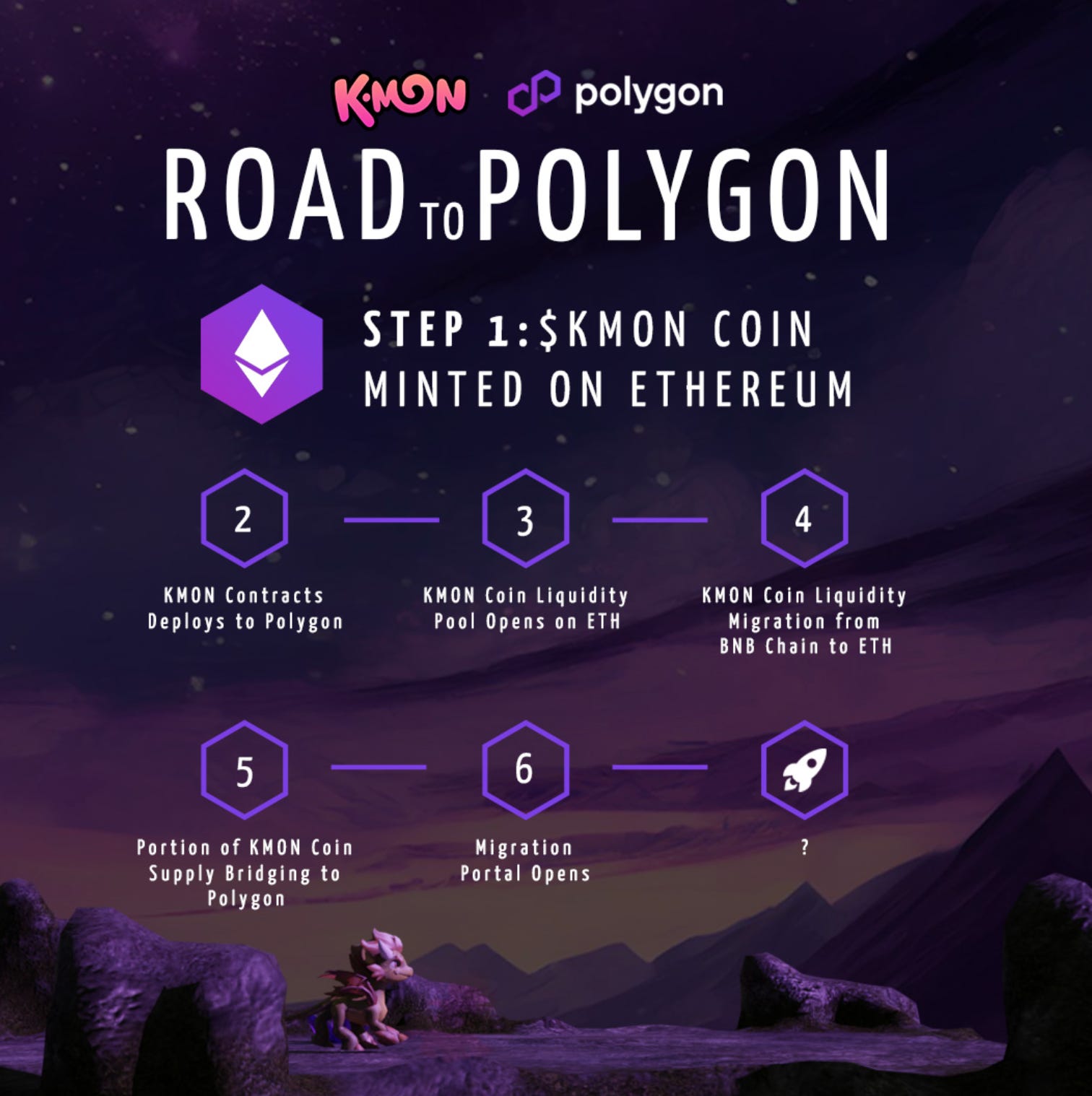 The $KMON Coin has been minted on Ethereum, marking the beginning of its migration to the Polygon network, scheduled for completion on February 15th. This step is part of a strategic roadmap towards adopting the Polygon platform for its anticipated benefits in scalability and transaction efficiency. Further updates are expected as the migration progresses, with the KMON team indicating a significant announcement post-transition. Stakeholders are encouraged to follow the updates for the latest information on the transition process.
